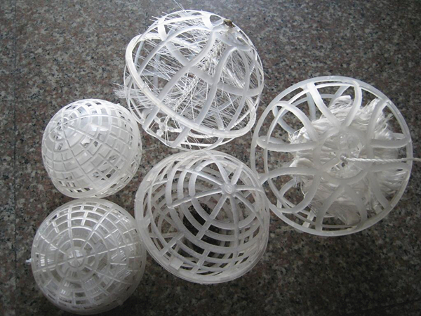 多孔生物懸浮球填料是目前國內(nèi)污水處理系統(tǒng)生物膜法填料中研發(fā)的新產(chǎn)品。多孔生物懸浮球填料是用聚乙烯或聚丙烯材料注塑而成的圓形球體,分內(nèi)外雙層,外部為中空魚網(wǎng)狀球體,內(nèi)部為多扇立體式球體或塑料絲。